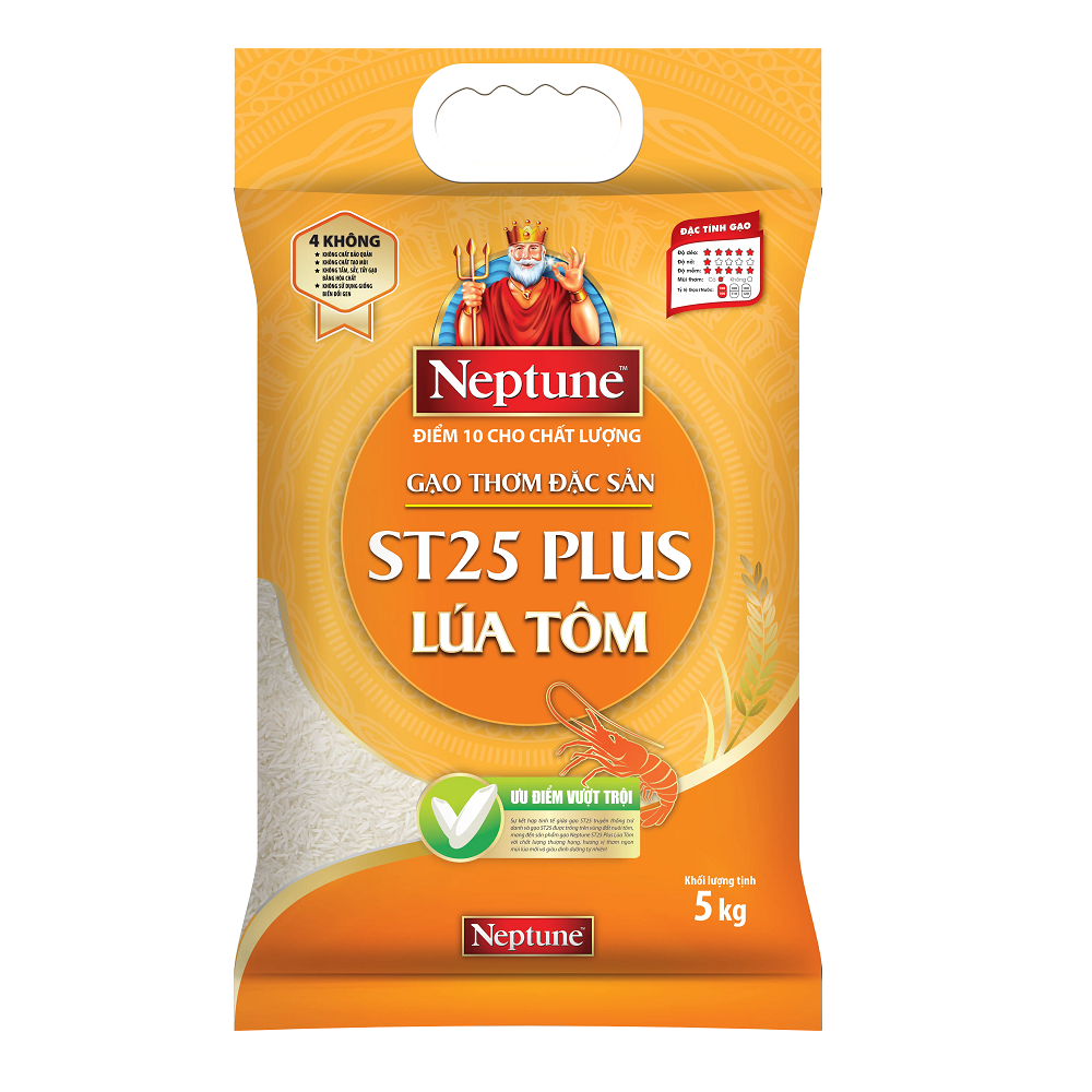 - Đặc Biệt ST25 Plus Neptune được sản xuất từ gạo ST25 trứ danh, kết hợp cùng các loại gạo đặc sản chọn lọc theo từng mùa vụ, mang đến những sản phẩm chất lượng, thơm mùi lúa mới.