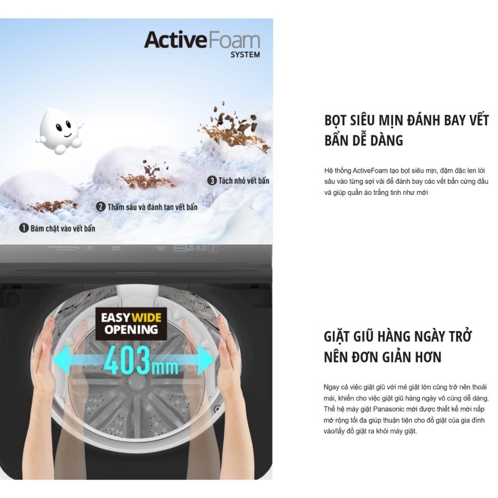 Tạo bọt siêu mịn, thẩm thấu nhanh vào quần áo nhờ hệ thống Active Foam.