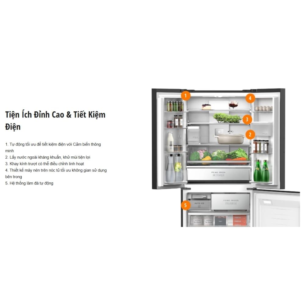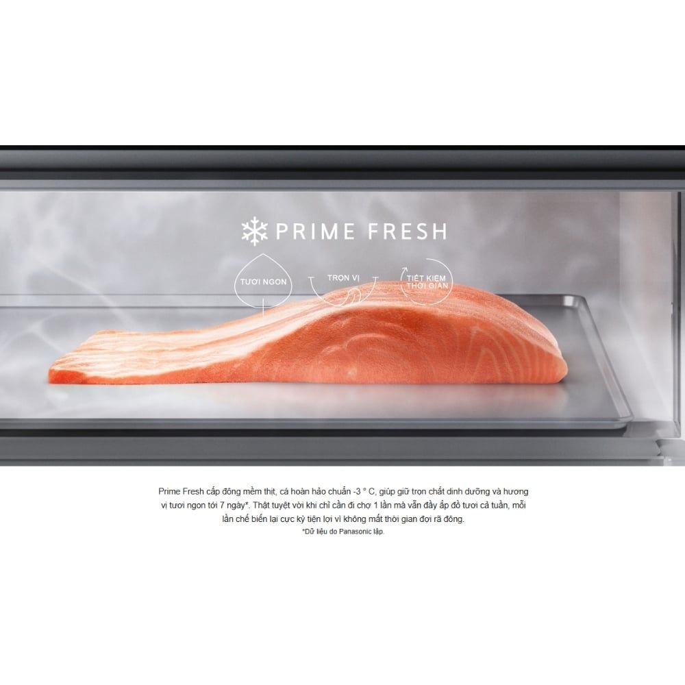Ngăn cấp đông mềm thế hệ mới Prime Fresh có dung tích lớn 41 lít, bảo quản thực phẩm ở chuẩn -3 °C nhanh gấp 4 lần, giảm 20% tình trạng oxi hóa vào bảo quản tươi ngon lên đến 7 ngày mà không đóng tuyết giúp chế biến không cần rã đông.