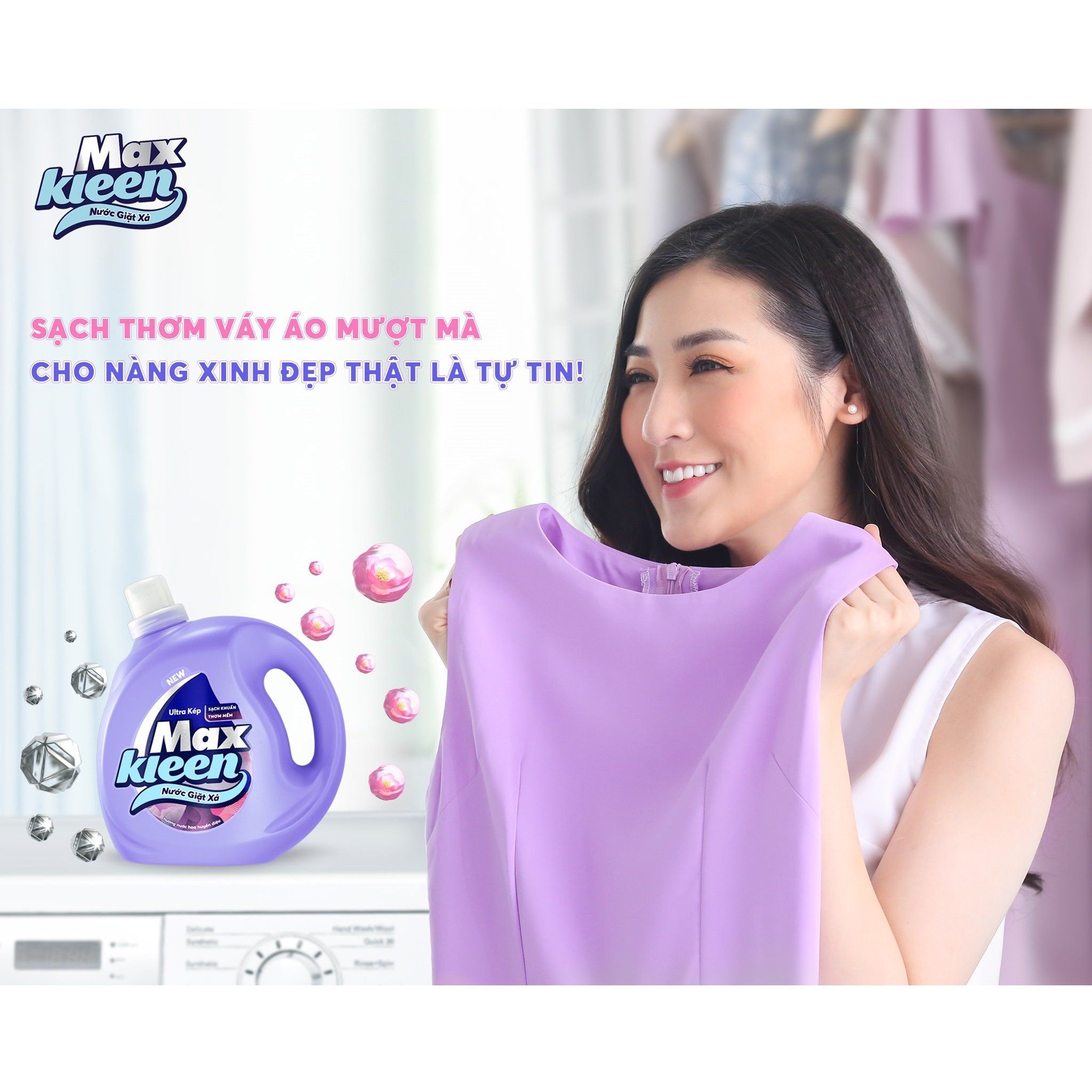 Nước Giặt Xả MaxKleen Hương Nước Hoa Huyền Diệu là công thức tiên phong cho thế hệ Nước giặt xả mới với công nghệ đột phá Ultra Kép kết hợp 2 sức mạnh “giặt” và “xả” trong 1 nắp giặt, không chỉ mạnh mẽ đánh bay vết bẩn cứng đầu và vi khuẩn giúp áo quần sạch sáng, mà còn lưu giữ sự mềm mại cùng hương thơm dài lâu suốt cả ngày.